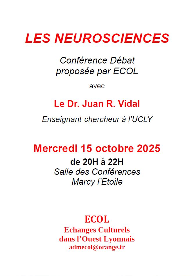 L’association ECOL (Echanges Culturels dans l’Ouest Lyonnais) vous présente sa prochaine conférence.