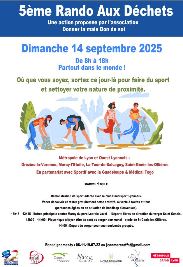 L'association Donner la Main, Don de Soi vous propose de participer à sa 5ème rando au déchets.